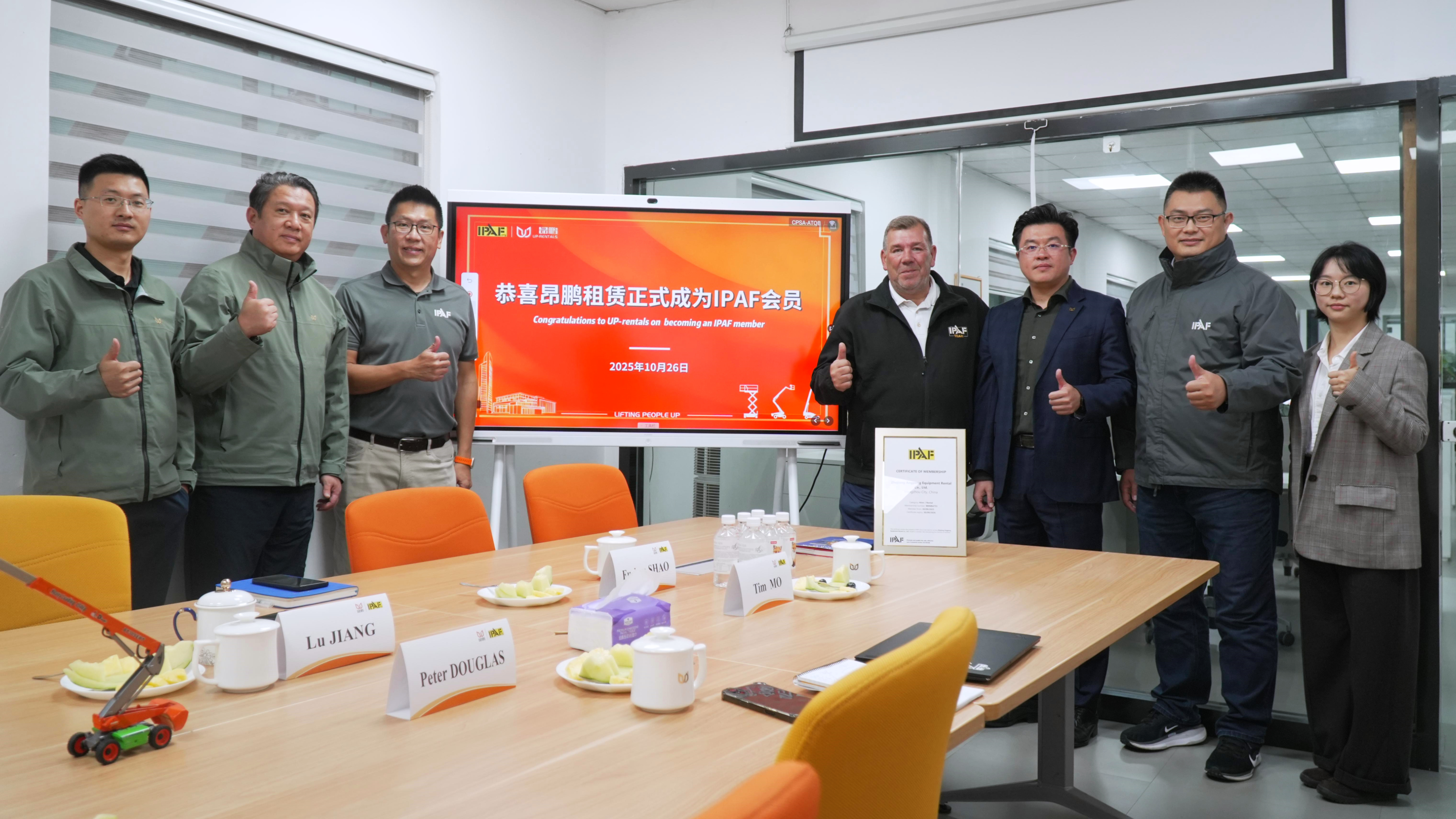 2025年10月26日,國際高空作業平臺聯盟(簡稱:IPAF)首席執行官-Peter DOUGLAS、東南亞區域總經理-屈永昇、中國區域總經理-莫宇蒞臨杭州,Peter DOUGLAS親自為「浙江昂鵬設備租賃有限公司」頒發會員證書。這一歷史性時刻標志著,昂鵬成為IPAF在中國登高車租賃企業中的第5家會員,正式躋身全球高空作業安全與規范發展的核心圈層,開啟行業發展新征程。